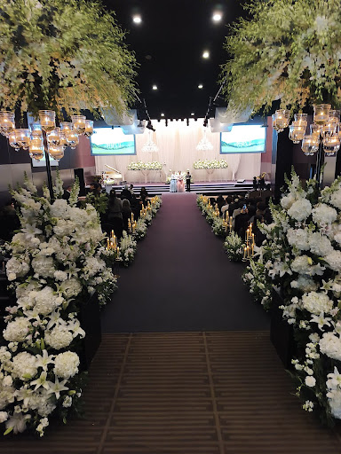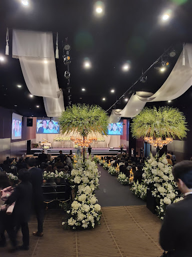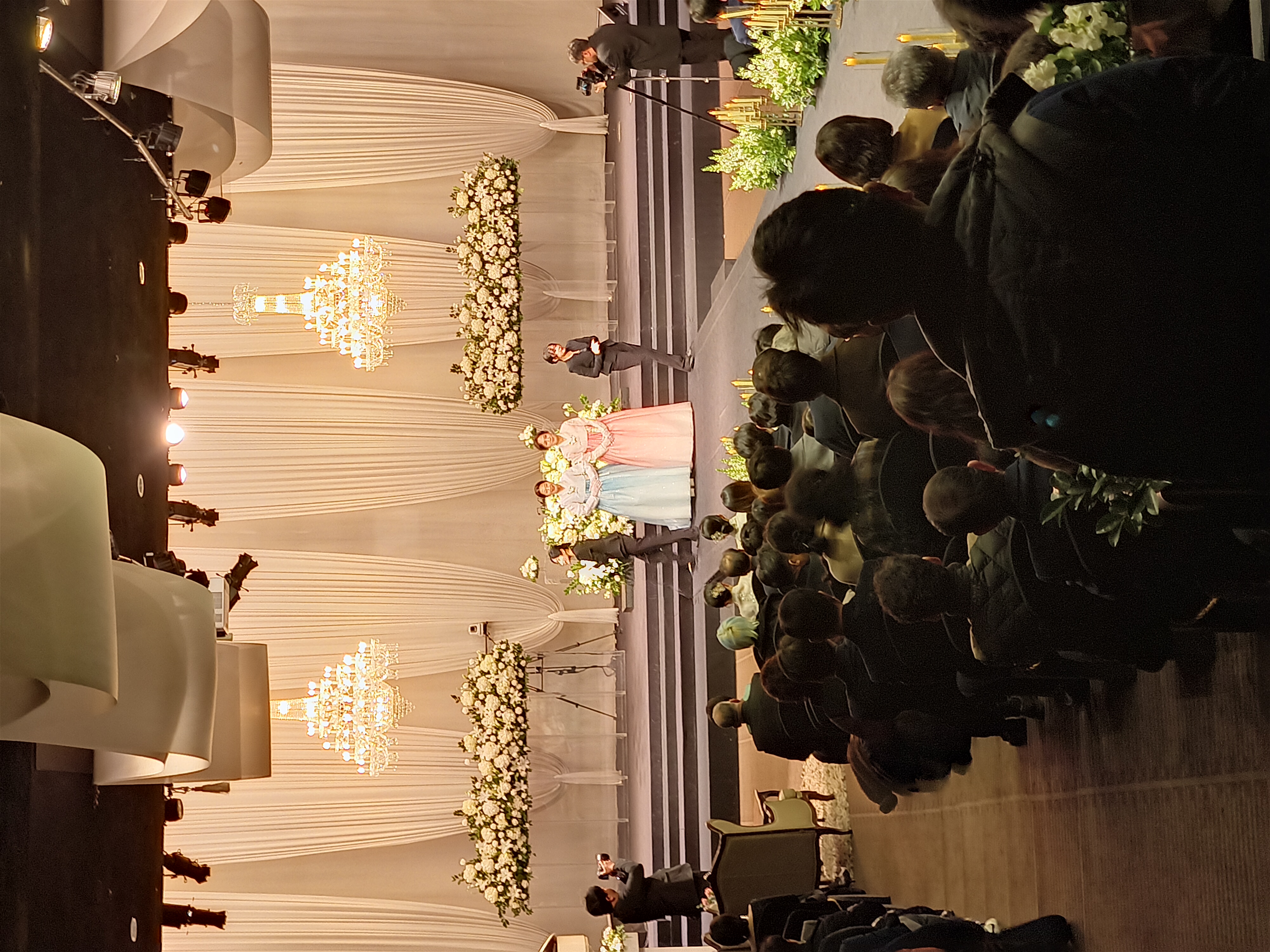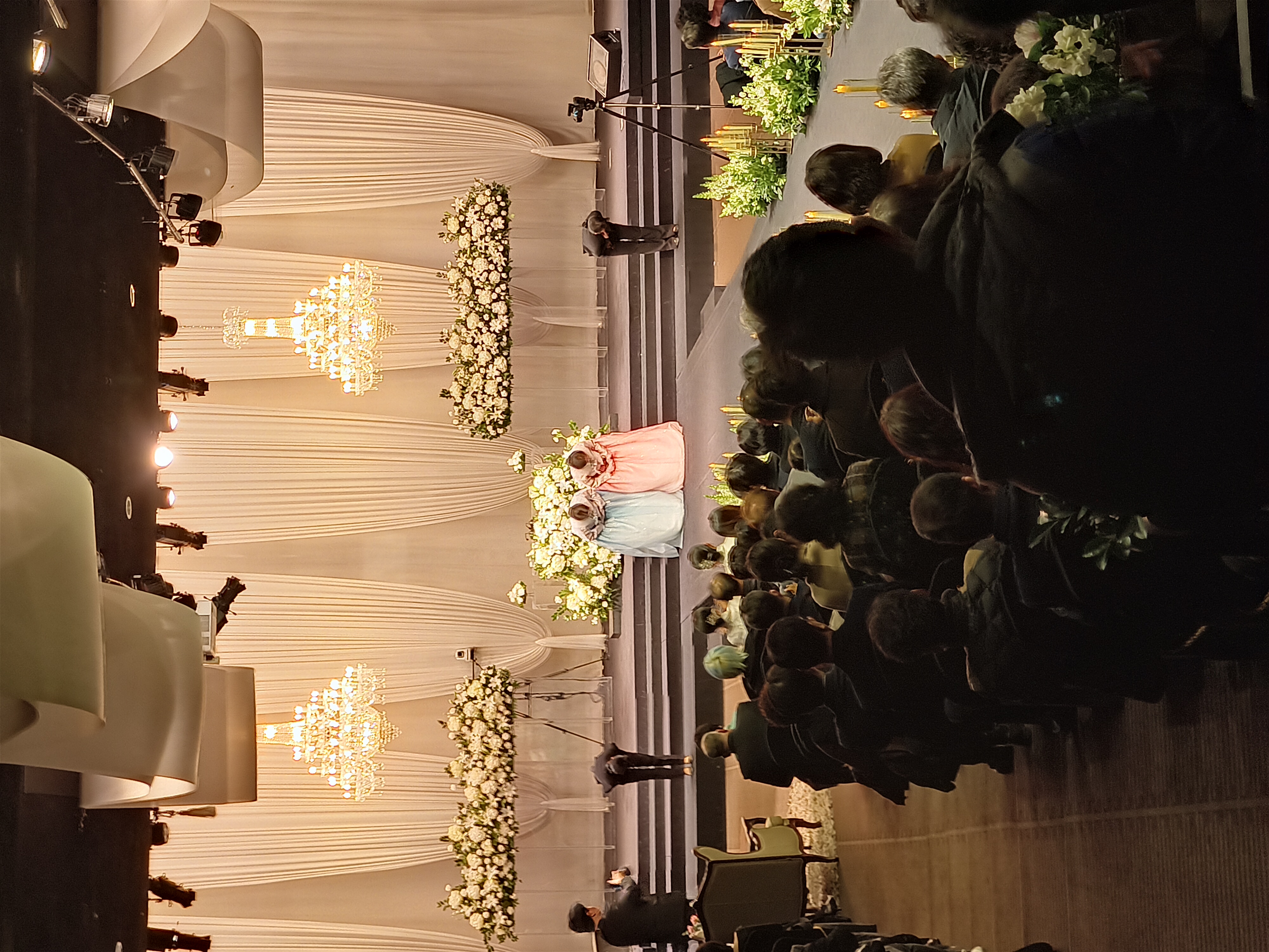 제가 여의도 웨딩컨벤션을 선택한 가장 큰 이유, 바로 웅장하고 어두운 홀 분위기 때문인데요. 실제 하객분들이 채워지고 조명이 켜진 모습을 보니 제 선택이 틀리지 않았음을 확신했습니다.