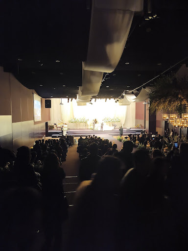 시식 전에 실제 예식을 잠시 지켜봤는데요. 조명 연출이 너무 좋아서 계속 감탄했어요.
